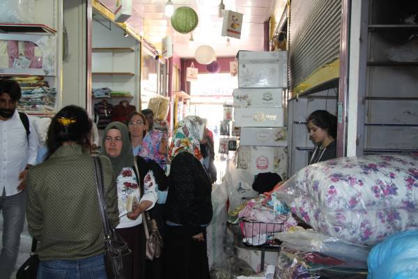 Mûkades Karakoç, hevseroka Îpekyolû ya HDP’ê Edîbe Babûr, endamê MP’yê Zelal Yerlîkaya û hevşaredara Îpekyolû Bêrîtan Tayan ku bi biryara qeyyûm ji peywirê hatibû girtin jî çûn serdana esnafên Bazara Rûsan û guh dan daxwaz û pirsgirêkên gel.