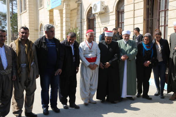 Hevserokê Kantona Efrînê Dr. Silêman Şêx Îsa, Hevseroka PYD'ê Eyşe Hiso, Hevseroka TEV-DEM'ê Asya Ebdullah, Hevseroka Meclîsa Damezrîner a Federasyona Demokratîk a Bakurê Sûriyeyê Hediye Yûsif û rêveberên kantonê heyeta ji başûr pêşwazî kirin. Heyetê piştî ku serdana Şehîdgeha Avesta Xabûr kir, li ber Meclîsa Qanûnsaz a Kantona Efrînê daxuyaniyek da çapemeniyê.