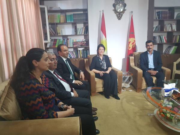 Heyeta HDP’ê ku ji Hevseroka HDP’ê Pervîn Bûldan û parlamenterên HDP’ê Feleknas Ûca, Osman Baydemîr, Îmam Taşçiyer, Berdan Ozturk, Dîlek Ocalan û endama MYK’ê Dîlek Boga û ji nûnerên HDP’ê yên Hewlêrê pêk tê ku hevdîtinên xwe yên li Başûrê Kurdistanê pêk tîne didomîne. Heyet Piştî YNK, Goran û şûnde çûn serdana Tevgera Azadî.