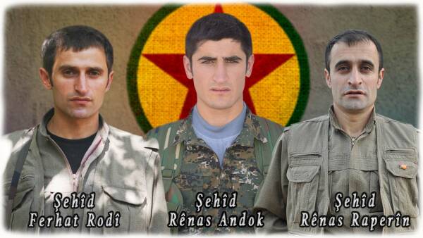 “10’ê Adara 2023’an di êrîşa dijmin a li ser Herêmên Parastinê yên Medyayê de, hevrêyên me yên hêja Alî Xebat, Rênas û Cesûr şehîd bûn.