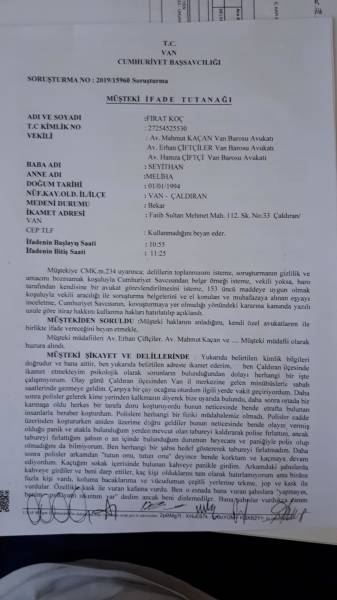 Li Wanê Firat Koç ê ku nexweşê şîzofreniyê ye û di dema protestoyên qeyyûm de li qehwexaneyekê polîsan êşkence li wî kiribûn, ligel ku rapora wî heye hê jî destgîrkirî ye.