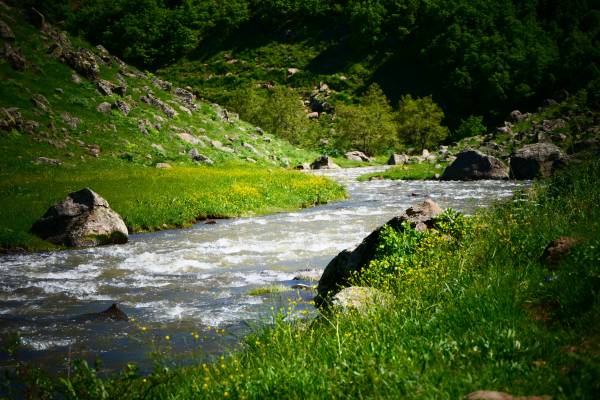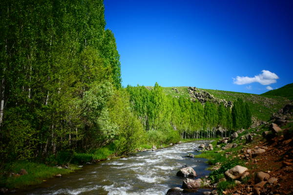Piştre ji bo ku em li zozan û gundan bigerin ketin li ser rê. Ji zinarê çiyayê Qertalê çemek cemîdî diherike û em berê xwe didin çem. Daketina çem gelek bi hêsanî û kêf bû, lê serketina wî jî ewqas bi zehmet bû. Li aliyekî keviyên berfê li pişt kulîlkên zer û şînahiya zozanan raseriya xwe li serê çiyayan dikin û li aliyekî din jî li gelî û newalan aveke zelal bi şireşir diherike. Ava van geliyan û rûbarên biçûk diherike ser çemê Mûradê. Piştî me dîmen û wêneyê xweza û çem kişandin me berê xwe da qûntara çiyayê Qertal. Derdora çiya bi xemla biharê xemiliye û seranserî serê çiya jî werza zivistanê tê jiyîn.