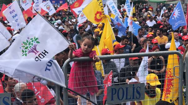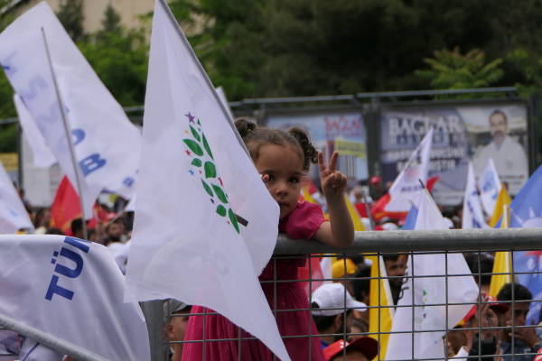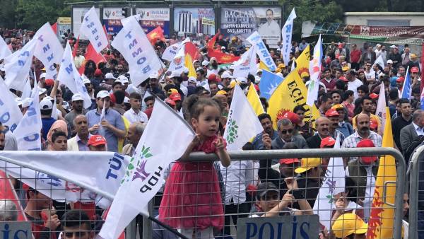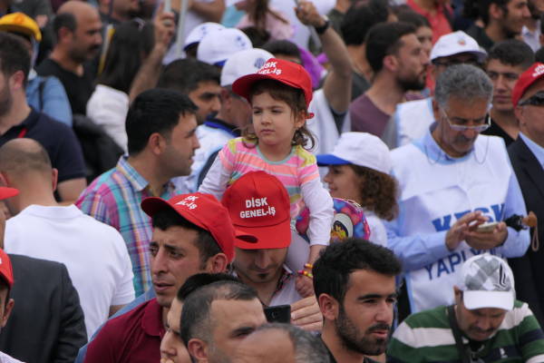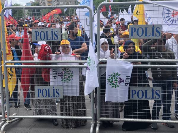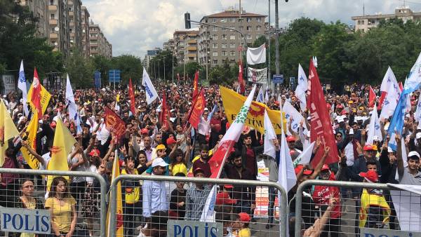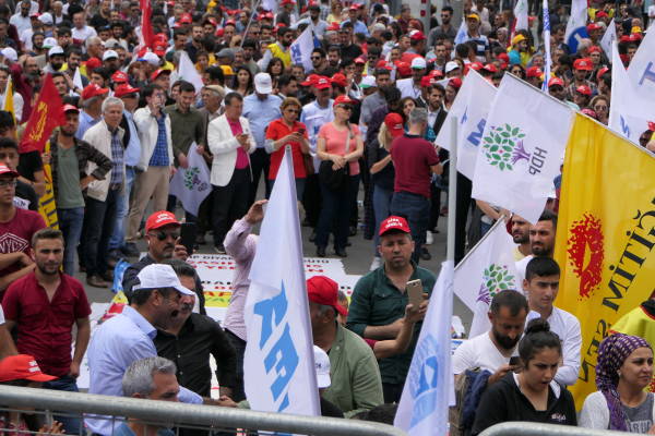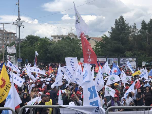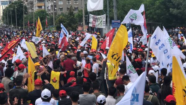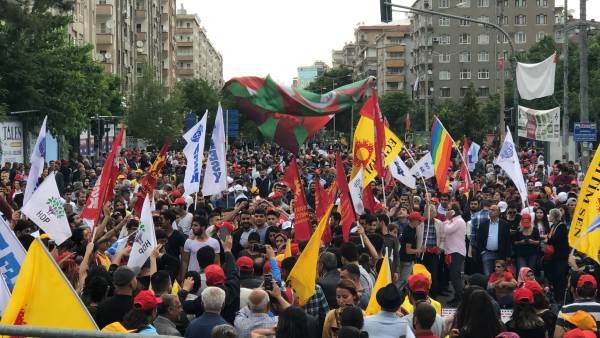 Di mîtîngê de dirûşmên “Bijî 1’ê Gulanê”, “Bijî Berxwedana Sûrê”, “Bimre Dîktatoriya Faşîst”, “Bijî Serok Apo” hate qîrikirin de, li gel Partiya Demokratîk a Gelan (HDP), Partiya Kedê (EMEP), Hewldana 78’an, gelek saziyên civaka sivîl, Hevserokê Giştî yê HDP’ê Sezaî Temellî, Hevserokê KCD Bedran Ozturk Parlemeterên HDP’ê yê Amedê Îmam Taşçier tevlî bûn.