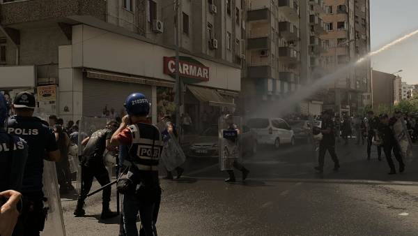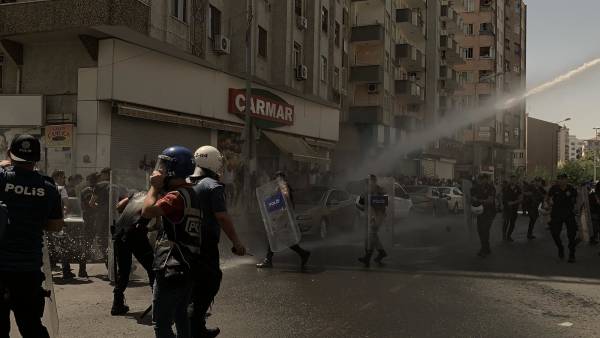 Beriya daxuyaniya HDP'ê ya li Amedê, hemû rêyên berê xwe li avahiya şaredariyê ne ji aliyê polîsên Tirk ve hatin asêkirin. Polîsên Tirk êrîşî gel û parlamenteran dikin, gel jî li ber xwe dide.