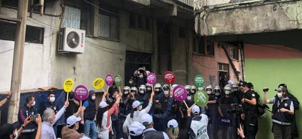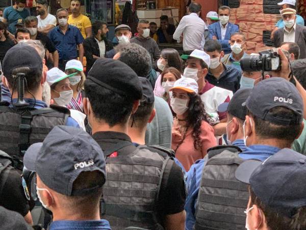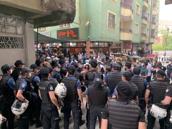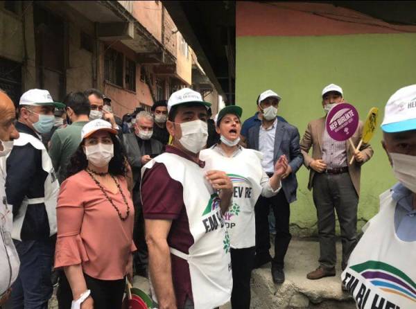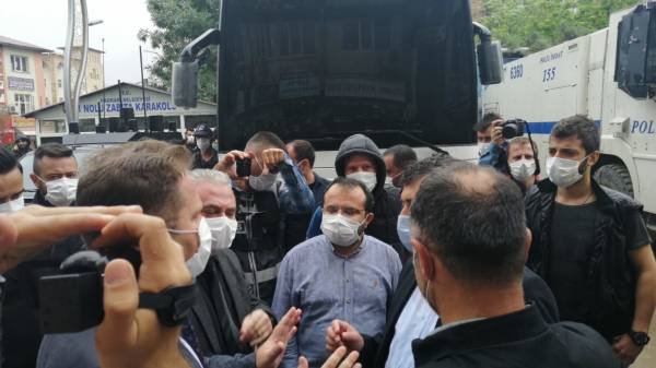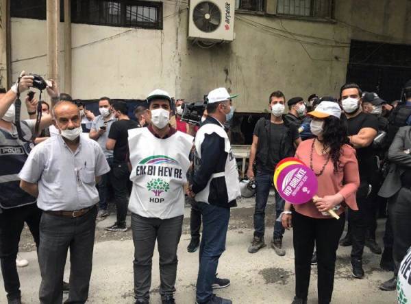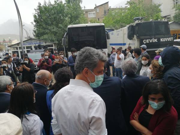 Hevserokê Giştî yê HDP'ê Mîthat Sancar li avahiya partiyê ye ku hatiye dorpêçkirin. Polîsên Tirk ku kolanên berê wan li avahiyê ne bi bendan girtine, nahêlin ku parlamenter û gel ji avahiya HDP'ê derkevin.