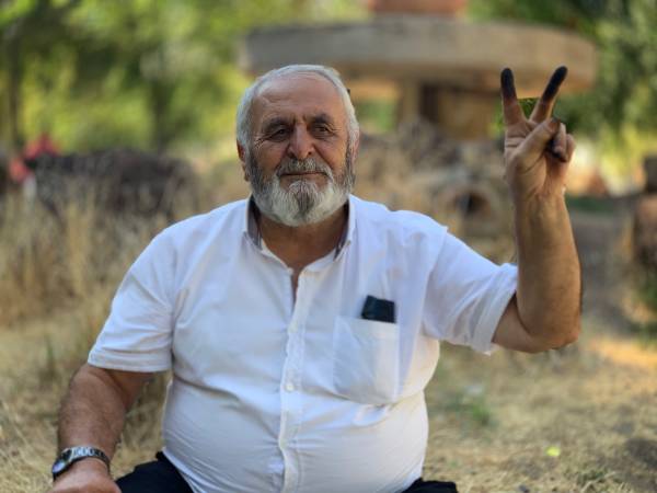 Abdulkadîr Ekîncî yê ku li gund kedkar û hilberîner e, li bajêr di berxwedanê de bi deng û rengê xwe xwedî li vîna xwe derdikeve.