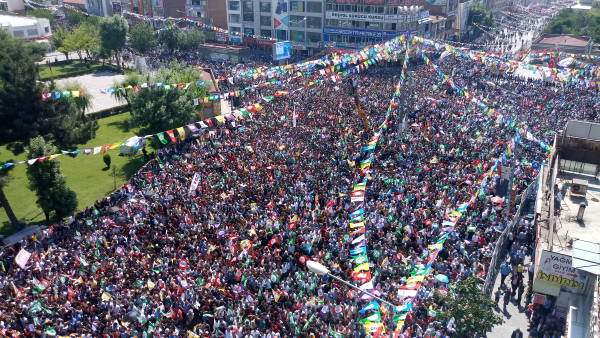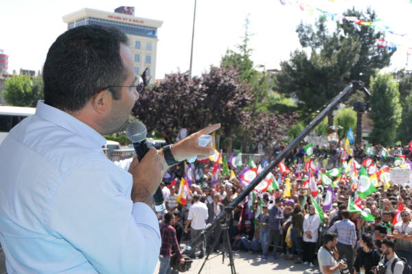 Hevserokê HDP’ê yê Wanê Umît Dede piştî deqeyek rêzgirtinê û şûnde destpêkê di mîtîngê de axivî û got: “Digotin pirsa Kurd nîne, em li vir bang dikin, pirsgirêka bi hev re ya Kurd û Tirk a serkeftinê heye. Astengiya li pêşiya vê hişmendiya te ye. Li Tirkiyeyê pirsgirêka dîktatoriyê heye.”