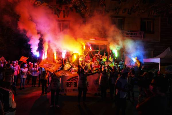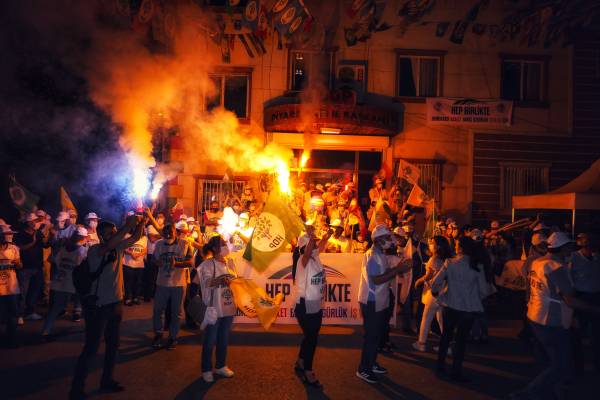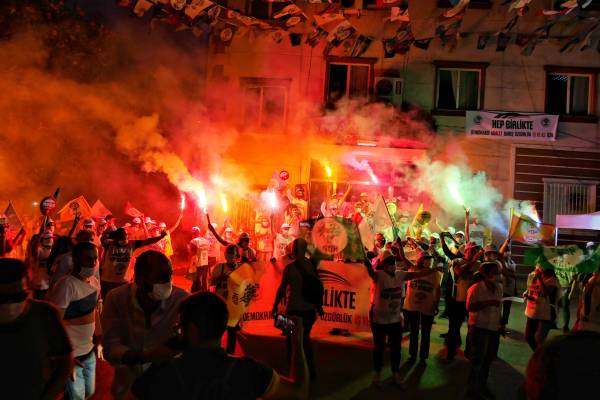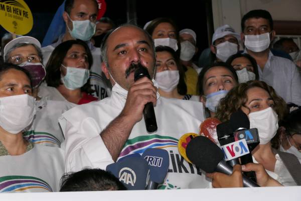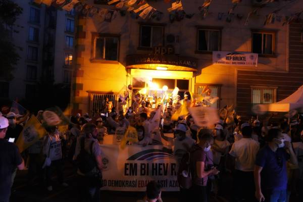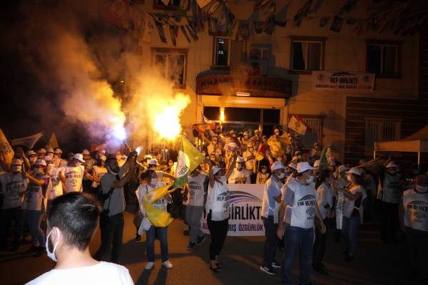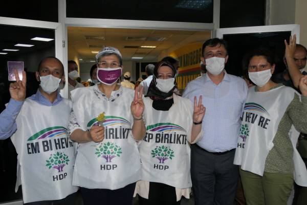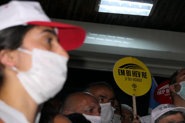 Li gel gel Hevserokên Kongreya Civaka Demokratîk (KCD) Leyla Guven û Bedran Ozturk heyet li pêşiya avahiyê pêşwazî kirin. Gel bi dirûşmên ‘Berxwedan jiyane’, ‘HDP gel e, gel li vir e’ û ‘Bijî Berxwedana HDP’ê’ heyeta hatin pêşiya avahiya HDP’ê ya bajar pêşwazî kirin.
