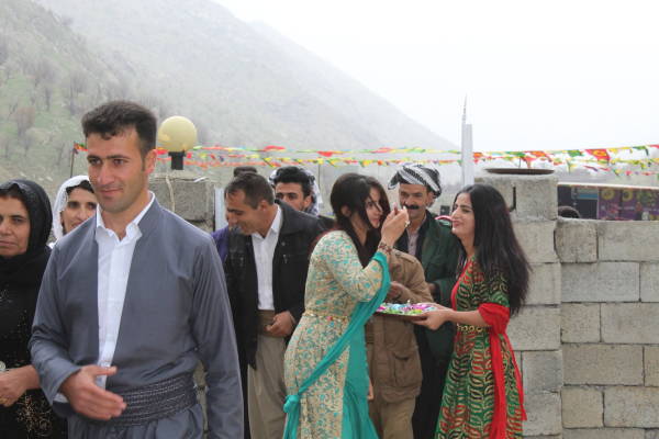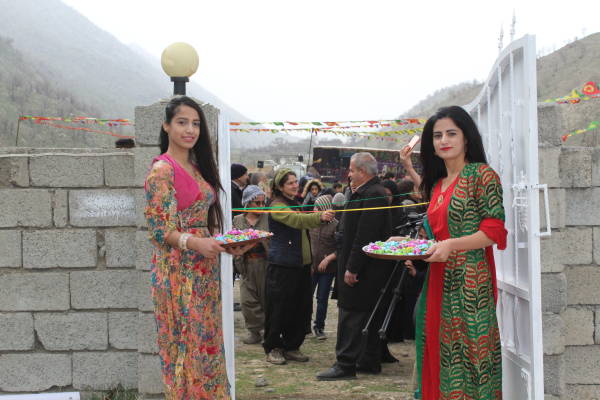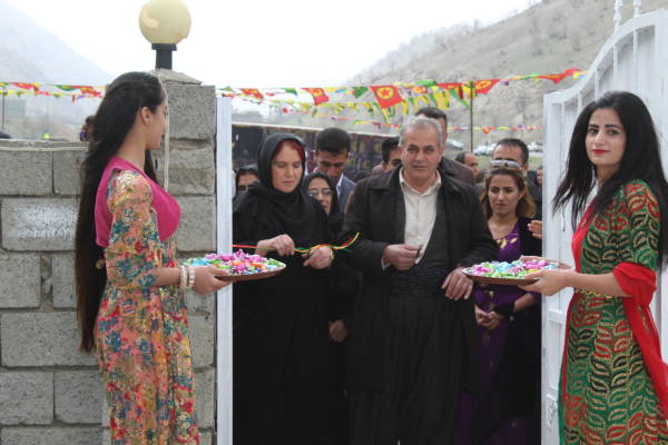 Girseya ku ji bo pîrozbahiya 8’ê Adarê ji gundê Bukrîskanê hatibûn bi coşî vekirina Navenda Encûmena Gel a Binarê Qendîlê pêşwazî kirin.