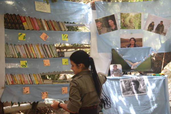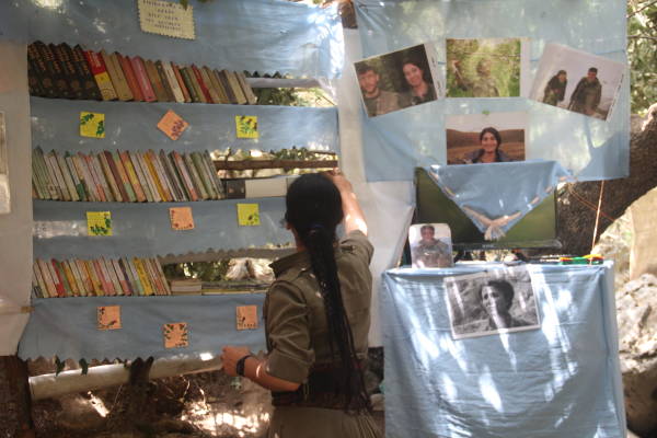 Yek ji van pirtûkxaneyan jî pirtûkxaneya gerîlayan e. Li bin darekê li ser refikan pirtûk hatine rêzkirin. Gelekî eşkere ye ku ev pirtûkxane bi derfetên kêm hatiye avakirin lê li ser gelek mijaran pirtûk hene. Gerîlaya ciwan a ku berpirsa pirtûkxaneyê ye, ji bo bicihanîna pêdiviyên pirtûkan ên rêhevalên xwe dixebite û kîjan pirtûk daye kîjan rêhevalên xwe li cem xwe dinivîse. Berpirsa pirtûkxaneyê diyar dike ku ew lîsteya pirtûkên di deste xwe de çêdikin û her gerîlayek mehane herî kêm du pirtûkan dixwîne.