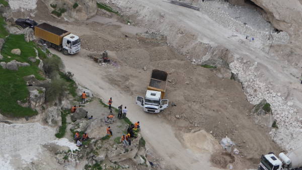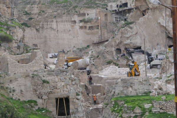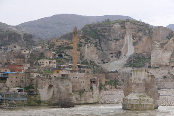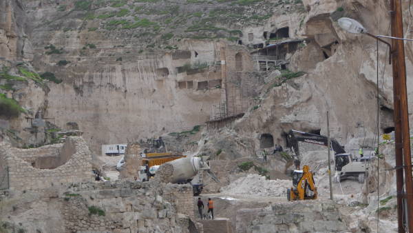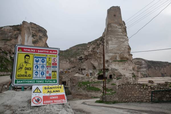 Şikeftên Heskîfê ku hinek ji wan bi rengekî xwezayî çêbûne û hinek jî bi destê mirovan hatine çêkirin û hejmara wan bi hezaran e, bi taybetî balê dikişînin. Lê belê ev şikeftên dîrokî yên Heskîfê bi dînamîtan yek bi yek tên teqandin û xerakirin. Bi navê 'Projeya qewînkirinê' de şikeft tên hilweşandin û hundire wan bi beton tê dagirtin. Tehtên biçûk ên li nava kelehê jî bi makîneyên kar hê jî tên şikestin. Herêma kelehê ku bi têlan dor lê hatiye girtin,, dar jî tên rakirin.