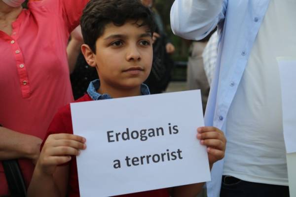 Beşdaran du posterên mezin hilgirtibûn ku li ser hatibû nivîsandin “Em dagirkeriya dewleta Tirkiyeyê ya li ser Başûr û Rojavayê Kurdistanê şermezar dikin” û “Serkeftina Rojavayê Kurdistanê, serkeftina Gelên herêmê ye”. Her wiha gelek posterên din jî hatibûn hilgirtin.
