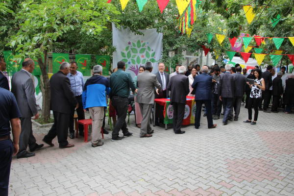 Hevserokê Giştî yê HDP'ê Sezaî Temellî, Hevserokên HDP'ê yên Wanê Yadîşen Karabûlak, Umît Dede, Hevserokên DBP'ê yên Wanê Ayla Tarhan, Okkeş Kava, namzetên HDP'ê yên parlamenteriyê yên Wanê û şêniyên herêmî tevlî merasîma cejnê ya li avahiya DBP'ê ya Wanê bûn.