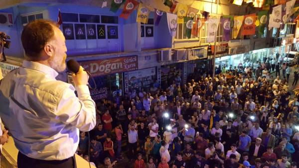 Hevserokê Giştî yê HDP'ê Sezaî Temellî karê xwe yê hilbijartinê yê li Sêrtê didomîne. Temellî danê êvarê serdana buroya hilbijartinê ya HDP'ê ya li navçeya Misricê kir û li vir ji gel re axivî.