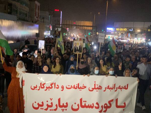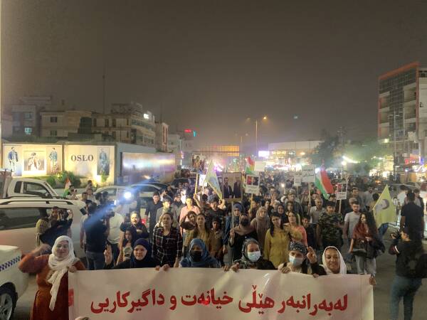 Girseya gel saetên destpêka şevê li Kolana Salim li hev civiyan û heta Derkî Sera ku navendeke qelebalix a bajarê Silêmaniyê ye meşiyan. Di meşê de bê navber dirûşmeyên piştigiriya berxwedana gerîlayên azadiya Kurdistanê dikin û xiyaneta PDK’ê şermezar dikin hatin berzkirin. Pankarta li ser hatibû nivîsandin "Li dijî xeta xiyanetê Kurdistanê biparzin" hat vekirin.