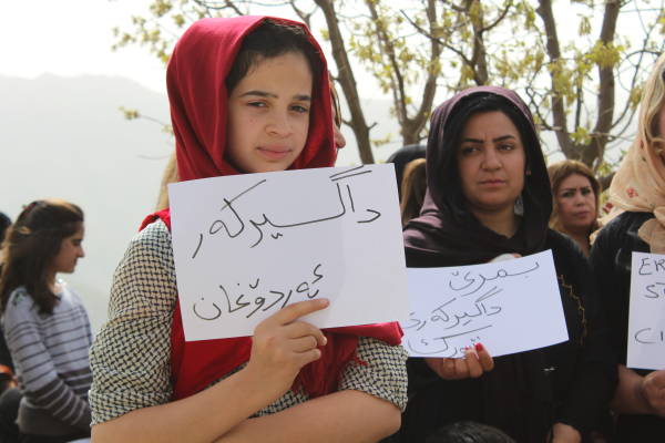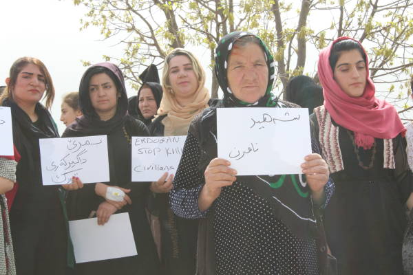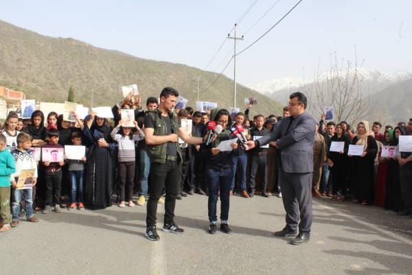 Di meşê de ciwan û jinan bi hêrs û kînek mezin ve bê navber dirûşmên ‘Qatîl Erdogan’, ‘Şehîd namirin’û ‘Dîktador Erdogan’ berz kirin. Li cihê bûyerê ji aliyê Tevgera Azadiyê ve daxuyaniyek hate dayîn û di daxuyaniyê de dagirkeriya dewleta Tirk a li hemberê Başûr û Rojavayê Kurdistan hate şermezarkirin û wiha hate gotin: “Eşkereye ku gelê Kurd bi dirêjahî dîrokê heta niha xwe li hember êrîş û dagirkeriyê parastiye û berxwe dide. Li hemberî faşizm û dagirgeriyê ti car serê xwe netewandiye. Her tim bi serbilindî jiyaye.”