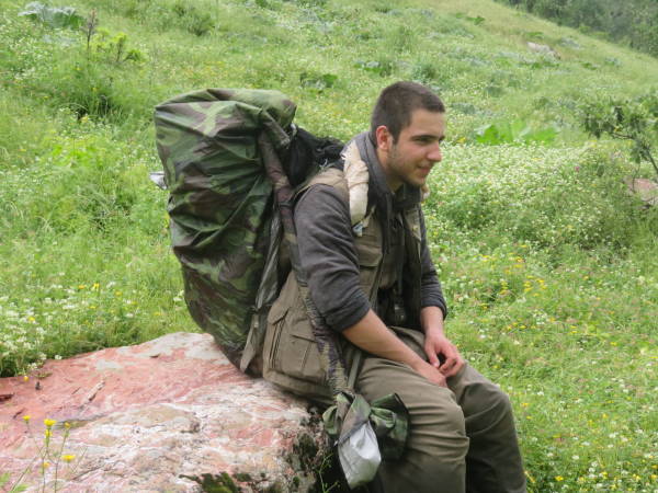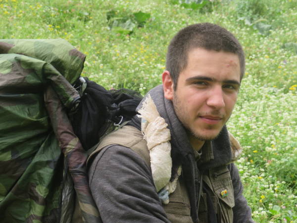 Ev her du gerîla ku cebilxaneya wan li pişta wan e, bi saetan meşiyan. Gerîla Çekdar sala 2015'an tevlî nava refên PKK'ê bûye. Rû li ken e, gelekî henekan dike û gerîlayekî çalak e. Bi henekên Çekdar, bêyî biwestin em rêwîtiya xwe didomînin.