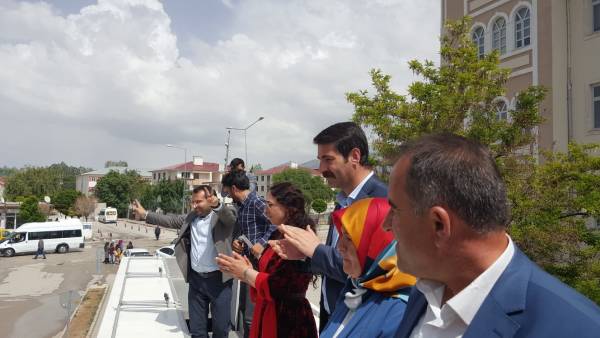 Namzetên Palemeterên HDP’ê yên Wanê Bedîa Ozgokçe Ertan, Mûrat Sarisaç, Muazzez Orhan û Tayyîp Temelî tevlî vekirina buroyên li Peyîzava û Westanê bûn.