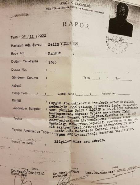 Yildirim da xuyakirin ku bavê wî di sala 1996’an de di girtîgehê de ji lingên xwe jî emeliyat bûye û ev tişt got: "Di sala 2002’an de jî bavê min dîsa di girtîgehê emeliyata dil derbas kir û niha jî gelek nexweşiyê wî hene. Ligel rapora Saziya Tiba Edlî jî bavê min serbest nayê berdan. Li girtîgehê de tedawiya bavê min nayê kirin û ew bi ti awayî nikare di girtîgehê de bimîne. Ji ber ku bavê min tedawiya xwe nabîne dibe qeyrana dil derbas bike. Divê li her derê gel xwedî li girtiyên nexweş derkeve. Bavê min bi ti şeklî nikare di girtîgehê de bimîne. Ez bang li tevahiya kesên bi peywirdar dikin ku ji bo girtiyên nexweş têkevin dewrê. Bila darbestên din ji girtîgehan dernekevin. Bila girtiyên nexweş werin berdan."