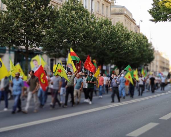 BORDEAÛX: Li bajarê Bordeaûx ê Fransayê, Pêngava 15'ê Tebaxê hate pîrozkirin. Kurdistaniyan li meydana Stalîngradê govend gerandin û 15'ê Tebaxê pîroz kirin. Piştre bi pêşengiya Meclîsa Bordeaûxê ya CDK'ê heta meydana Vîctoîreyê meşek hate lidarxistin. Di meşê de wêneyên Rêberê Gelê Kurd Abdullah Ocalan, alên PKK û YPG û YPJ'ê hatin hildan û bi belavkirina belavokan bi dawî bû.