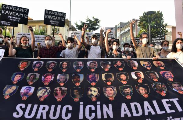 Di çalakiyê de sloganên ‘Ji bo Sirûcê edalet, ji bo her kesî edalet’, ‘Dewleta qatil wê hesap bide’ û ‘Wê hesabê Sirûcê were pirsîn’ hatin berzkirin.