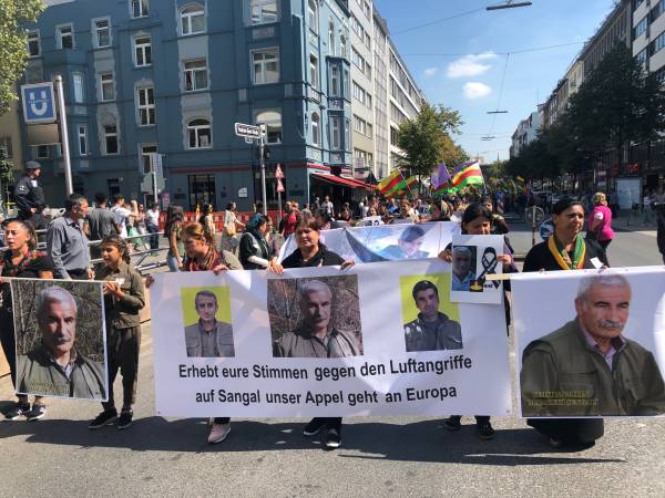 DUSSELDORF: Bi tevlîbûna du hezar kesî li bajarê Dusseldorf ê Elmanyayê jî êrîşa dewleta Tirk a li ser Şengalê bi meşekê hate şermezarkirin. Meş ji Fed-Med NRW’ê destpê kir û li vir Hevserokê Fed-Med’ê Engîn Seven, siyasetmedara jin Besîme Konca û Ji Federasyona Êzidiyan Hecî Çelîk axivîn.