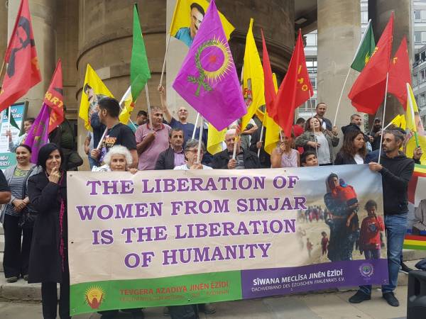 LONDON: Li bajarê London ê Bîrîtanyayê êrîşa dewleta Tirk a li ser Şengalê ku têde endamê Koordînasyona Êzidiyên Şengalê şehîd bibû bi mîtîngekê hate protestokirin.Di çalakiyê de li ser navê saziyan bang hate kirin ku li dijî êrîşa serî hildin û êrîşa li ser şengalê şermezar kirin.