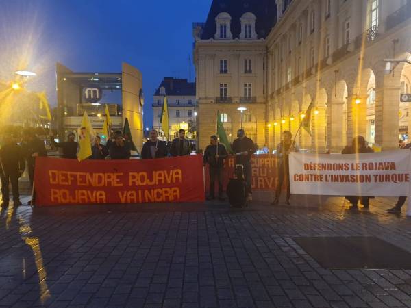 Kurdistaniyên li bajarê Rennes ê Fransayê jî li dijî êrîşên dagirkeriyê yên dewleta Tirk li meydana Repûblîqûeyê li hev kom bûn.