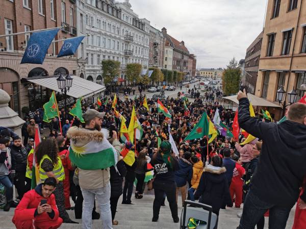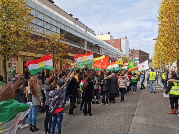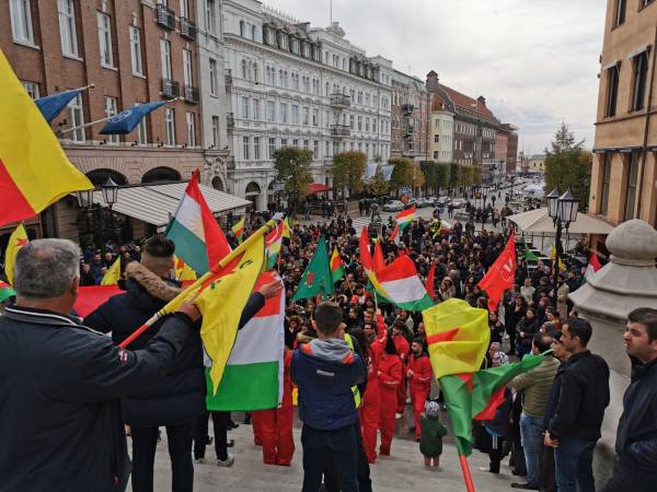 Kurdan tevî dostên xwe li bajarê Helsîngborg ê Swêdê li dijî êrîşên dagirkeriyê yên dewleta Tirk çalakiyek pêk anîn.