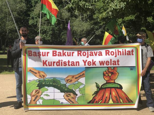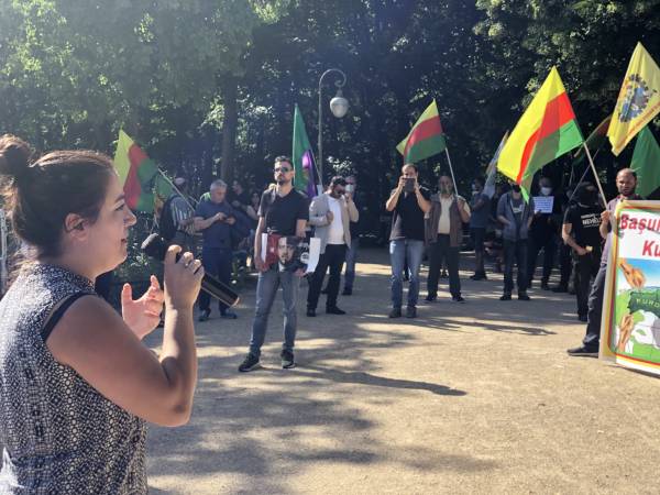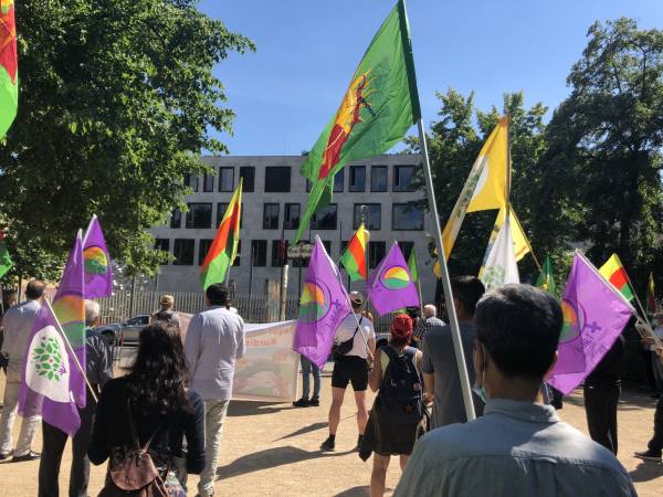 Kurdistaniyên ku li ber Sefaretxaneya Bilind a Tirk a li Berlînê li hev kom bûn, êrişên dewleta Tirk şermezar kirin. Bi navê Meclîsa Jinên Êzidî Nûrê Alkiş axivî û got, "Dagirker dixwazin, tişta beriya niha nekarî li Şengalê bikin, niha bikin. Civaka Êzidî wê her tim li ber dagirkeriyê rabe." Parlamenterê partiya çep Dîe Lînke Hakan Taş jî got, "Rejîma Erdogan her winda dike. Her ku winda dike êrişê dibe ser Kurdistanê. Em van êrişan bi tundî şermezar dikin." Endama Meclîsa Federal a Elman Gokay Akbûlût jî got, "Em ê van êrişan bixin rojeva meclîsê."