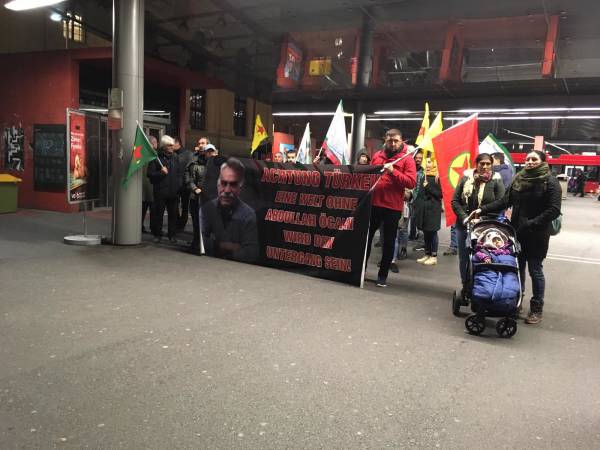 Kurdistaniyên li ber gara navendî ya Bernê li hev civiyan, alên PKK, YPG, YPJ û posterên Ocalan hildan. Di çalakiyê de dirûşmên "Terorîst Erdogan", "Artêşa Tirk a dagirker ji Kobanê bicehime" hatin qîrîn. Di daxuyaniyê de bal hate kişandin ser êrîşên dewleta Tirk û ji raya giştî ya navneteweyî hate xwestin ku bêdeng nemîne.