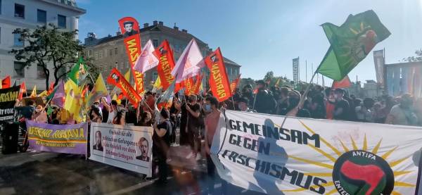 Êrişa ku dewleta Tirk li gundê Helincê yê Kobanê kir, li paytexta Awûstûrya Viyanayê bi meş û mîtîngekê hate şermezarkirin.
