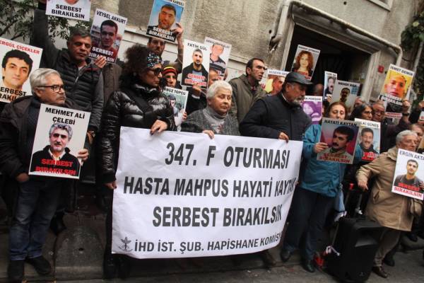 Komîsyona Girtîgehê ya Şaxa Komeleya Mafê Mirovan (ÎHD) a Stenbolê xwest di hefteya 347’emîn de çalakiya “Rûniştina F” li Qada Galatasaraê li dar bixe û balê bikişîne ser rewşa girtiyên nexweş lê polîsan çalakî dîsa asteng kir. Li ser vê yekê çalakî li ber avahiya ÎHD’ê li dar xistin. Pankarta bi zimanê tirkî û îngîlîzî ya bi nivîsa “Girtiyên nexweş berdin” li şibakeya avahiya komeleyê hat daliqandin.