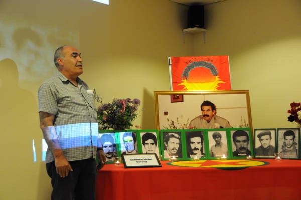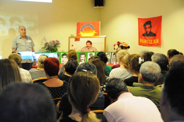 Di bîranîan wêneyên Rêberê Gelê Kurdî Abdullah Ocalan, Dîsa pêşengên THKO’yê Denîz Gezmîş, Yusuf Aslan, Huseyîn Înan û Lîderê TKP/ML’ê Îbrahîm Kaypakkaya û şehîdên din ên Gulanê hatibûn xemilandin de, bi deqeyeyk rêzgirtinê ve destpê kir. Di bîranînê de li ser navê Tevgera Azadiya Kurd Hasan Înce axivî û qala girîngiya Şehîdên Meha Gulanê ya ji bo Gelê Kurd û gelên Tirkiyeyê kir.