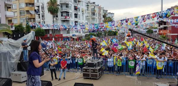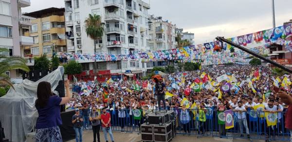 Hevseroka Giştî ya HDP’ê Pervîn Bûldan jî axivî û got: “Mêrsîn bajarê aştî, biratî û azadiyê ye. Ev bajar bajarekî ku Kurd, Ereb, Tirk û gelek gelên din li xwe diger bi awayê armam bijî ye. Profîla HDP’ê ye. “
