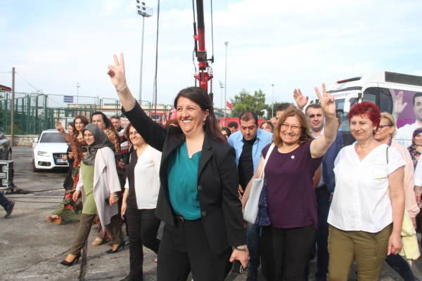 Hevseroka Giştî ya HDP'ê Pervîn Bûldan jî gel silav kir û wiha got: "16 sal in bi xwe dibêjin 'Me ev welat baş bi rê ve nebir'. Lê di 3 salên dawî de bi KHK'ê hemû kes mexdûr birin. Bi sedan akademîsyen, mirovên aştiyê, akademîsyen, mirovên aştiyê avêtin zindanê. Li vî welatî siyasetmedar, wekîl, şaredar ji kar girtin û avêtin zindanê. Li şûna wan qeyûm tayîn kir. Bi taybetî qeyûmên tayîn bûn tenê heqaret li gel kirin. Em soz didin we, di serî de em ê Qeyûman û piştre Tayyip Erdogan di sindoqan de defin bikin. Xwezî li şûna pira sêyemîn û balafirgeha sêyemîn pira di navbera dilan de ava kiribûna. Mirov nekiribûna dijminên hev. Ermen, Kurd û Tirk kiribûna dostên hev. Hêvî, aştî, demokasî û çiqas nirxên mirovahiyê tev bin pê kirin. Ez li vir îlan dikim we îktidarê hilbijartin winda kiriye. Ka li 5 salên pêş me binerin. Binerin HDP û Birêz Demirtaş vî welatî çawa bi rê ve dibe.