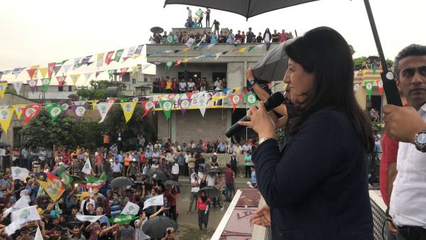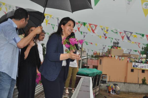 Hevseroka HDP’ê Pervîn Bûldan axivî û diyar kir ku gelê Tarsûs, Mersînê biryara xwe dane û wê piştgiriya HDP’ê bikin. Bûldan wiha domand; “Li vî bajarê ku mirov bi hev re di nava aşitî û biratiyê de dijîn, kesên ku dixwazin gelan berdin hev bi ser neketin û sernakevin jî. Ev bajar bê nefes hiştin. Piştî 24’ê Hezîranê em ê wan bi dengê we di sindoqan de bifetisînin.”