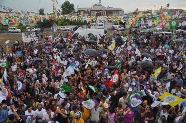 Partiya Demokratîk a Gelan (HDP) di çarçoveya xebatên hilbijartinên 24’ê Hezîranê de li Taxa Bahçe ya navçeya Tarsûsê civîna gel lidarxist. Hevseroka HDP’ê Pervîn Bûldan û namzetên HDP’ê beşdarî civînê bûn. Jinan bi cilên neteweyî, alayên kesk, sor û zer HDP’yî pêşwazî kirin. Tevî baranê gel qad neterikand û bênavber dirûşmeyên ‘Bijî Serok Apo’ , ‘Jin Jiyan Azadî’ , ‘Bi berxwedanê em ê bi ser bikevin’ û ‘Em HDP ne, Em biçin Meclîsê’ berz kirin.