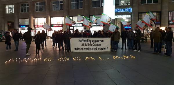 Endamên Ciwanên Şoreşger li ber dêra domê ya li Kolnê li hev civiyan û ji bo balê bikişînin ser tecrîdkirina Ocalan çalakiyek li dar xistin.