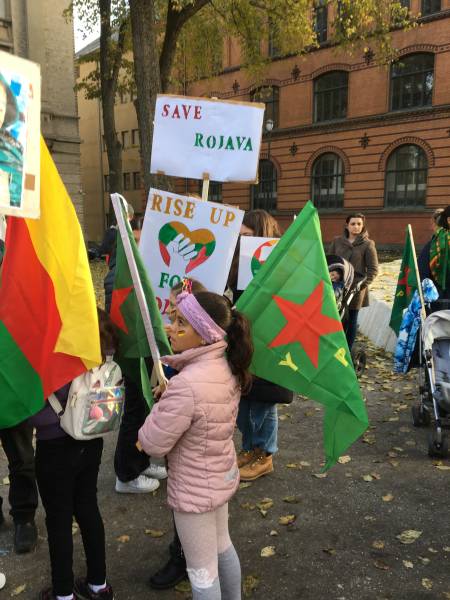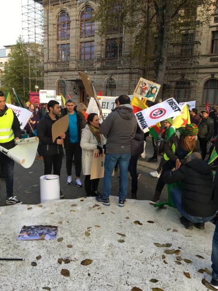 Kurdistanî tevî dostên xwe bi banga Komîteya Piştevaniya Rojava li meydana Torgê li hev kom bûn û ji bo boykotkirina malên Tirk belavok belav kirin. Her wiha nerazîbûn nîşanî bêdengiya hikumetên Ewropayê dan.