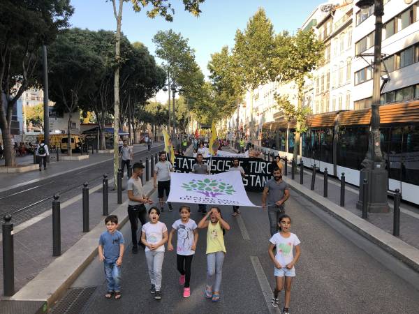 Kurdistaniyên li bajarê Marsîlyayê jî desteserkirina şaredariyan şermezar kirin. Nêzî hezar kes tevlî çalakiyê bûn û terora dewleta Tirk a li dijî gelê Kurd şermezar kirin.