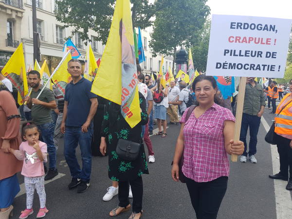 Li Parîsê nêzî hezar Kurdistanî, şoreşgerên Tirkiyeyî desteserkirina şaredariyên Amed, Mêrdîn û Wanê yên HDP'î şermezar kirin. Çalakger li meydana Repqûblîqûe li hev kom bûn û heta meydana Bastîle bi qîrîna dirûşma "Em ê koalîsyona şer a AKP-MHP'ê têk bibin" meşiyan.