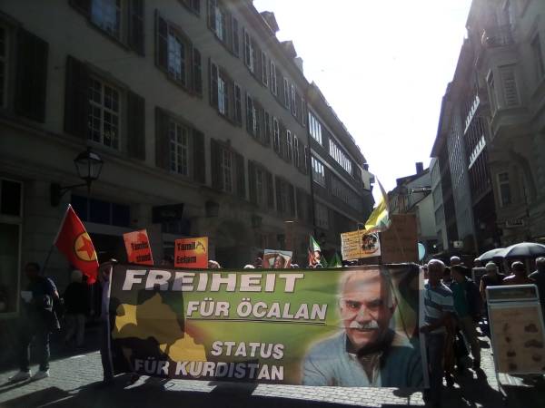 Kurdisataniyên ku tevlî çalakiya li parka St. Leonard hate lidarxistin bûn, pankarta ‘Ji Ocalan re azadî, ji Kurdistanê re statû” û posterên Ocalan hatin hildan. Meşa ku ji parka St. Leonard destpê kir li Markplatzê mîtîngek hate kirin.