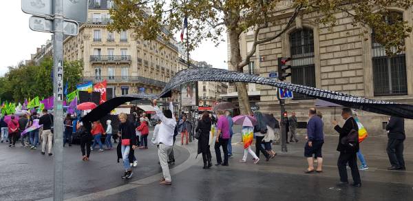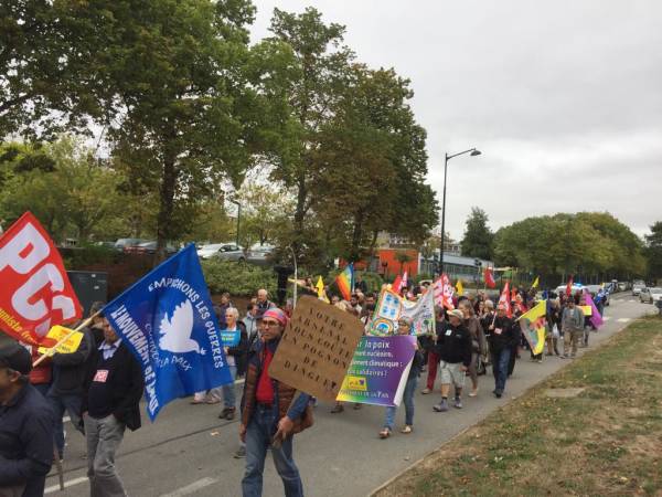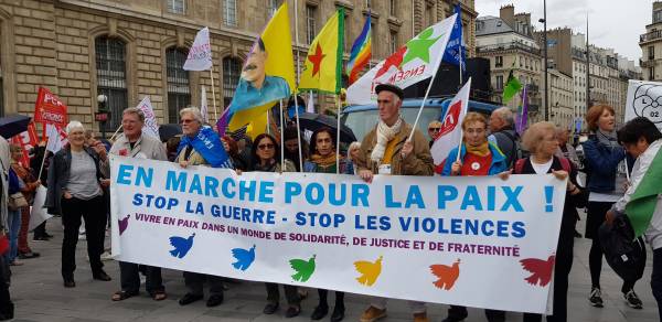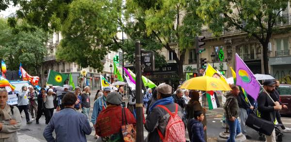 Li paytexta Fransa Parîsê jî Kurdistaniyan di Meşa Aştiyê de bal kişandin ser tecrîda li ser Rêberê Gelê Kurd Abdullah Ocalan û dewleta Tirk protestokirin. Meşa ku Partiya Komunîst a Fransa, Eniya Çep, saziyên dijî şer û sendîka tevlî bûn, pankarta ‘Ji şer û şidetê re na’ vekirin. Meşa aştiyê ya ji Qada Repûblîqûeyê destpê kir, Tevgera Jinên Kurd ên Fransa (TJK-F), Konseya Kurd a Demokratîk a Fransa (CDK-F), ACTÎT, Nûnerên SKB’ê û Kurdistanî tevlî bûn. Di meşa bi sedan belavok hatin belavkirin û bal kişandin ser tecrîda li ser Ocalan de, bi boneya çûna Serokkomarê Tirk Recep Tayyîp Erdogan a Elmanyayê jî dowîzên ‘Xêr nehatî Erdogan’ hatin bilindkirin û protesto kirin. Meşa li Parîsê li Qada Stalîngradê bi dirûşmên li dijî şer hatin berzkirin û şûnde bi dawî bû.