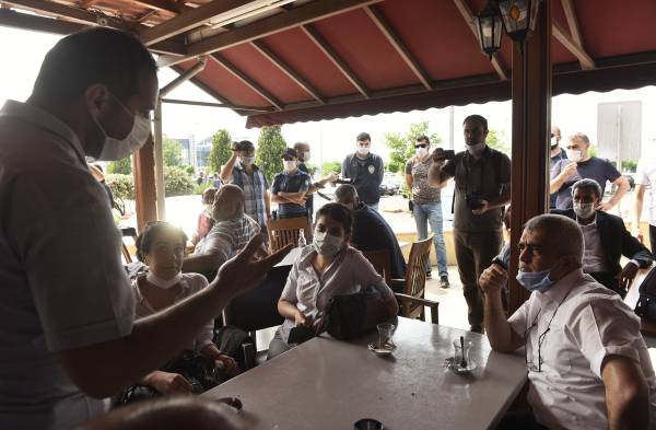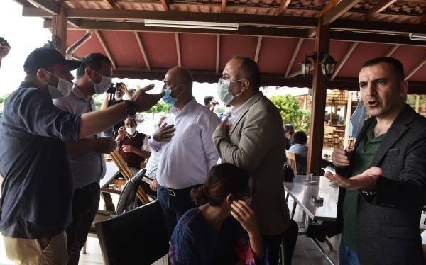 Di navbera polîsan û heyetê de alozî çêbû. Polîsan li kafeyê êrîş kir, mase wergerand û rêveberên bajêr destgîr kir. Li gorî agahiyên pêşîn 5 kes hatine destgîrkirin.