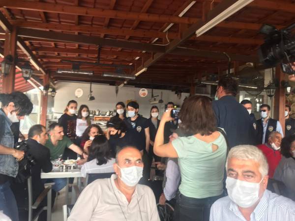 Li Sîlîvriyê Hevseroka HDP’ê ya Stenbolê Elîf Bûlût û Endamên Meclîsa Partiyê hatin ba hev. Polîsan xwestin li kafeyekê li nasnameya heyetê kontrol bikin lê parlementeran destûr nedan.