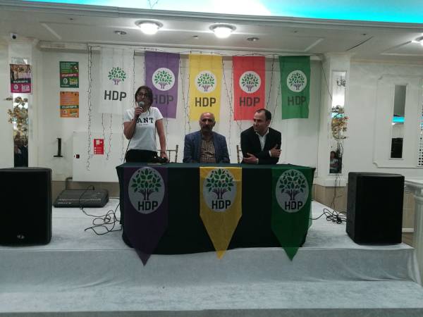 Li bajarê Nantes ê Fransayê ji bo hilbijartina 24’ê Hezîranê mîtîngek hate lidarxistin. Mîtînga ku ji aliyê komîsyona hilbijartinê ya HDP’ê ku li Komeleya Elewiyan hate lidarxistin Parlemetera HDP’ê ya Sêrtê Besîme Konca, Serokê Komeleya Elewiyan Ziya Ûlûsoy û hevserokên NCKD-Nantesê tevlî bûn.