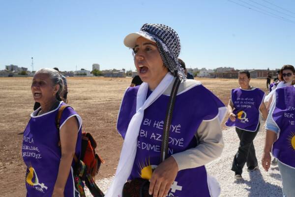Meşa "Em bi hêviyê ber bi azadiyê ve dimeşin" a bi pêşengiya TJA'yê ji Amedê destpê kir, ber bi Enqereyê ve dewam dike. 250 jin ên meşvan, piştî meşa li Mersînê wê 6'ê Cotmehê bigihêjin Enqereyê. Meşvan wê daxwazên xwe li meclîsê bînin ziman û bi partiyên din re hevdîtinê bikin. Meşa jinan bi heman coş û kelecanê dewam dike. Ji beşdarên meşê Gulistan Sevîm ku du sal in bi daxwaza aştî û azadiyê beşdarî hemû meşan dibe, di vê meşê de jî amade ye. Gulistan Sevîm ji Sêrtê beşdarî meşê bû. Ji malbata wê du kes di şer de jiyana xwe ji dest dan.