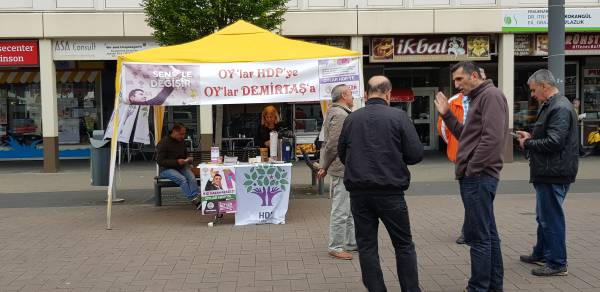 Li bajarê Dûîsbûrg ê Elmanyayê ji bo xebatên hilbijartina 24’ê Hezîranê li sûka semtê ya Hambûrnê stand hate vekirin.
