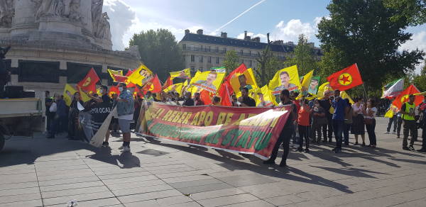 PARÎS: Çalî bi banga CDK-F û TJK-F li qada Repûblîqûeyê pêk hat. Çalakgeran êrişên dagirkeriyê yên dewleta Tirk ên li ser Başûrê Kurdistanê şermezar kirin û posterên Rêberê Gelê Kurd Abdullah Ocalan û alê PKK'ê hildan. Girseya gel li pişt pankarta bi nivîsa "Azadî ji Rêber Apo re, statu ji Kurdistanê re" heta meydana Bastîlle meşiya. Piştre mîtîngek hate lidarxistin û Hevserokê CDK-F'ê Veysel Keser axivî. Keser got, "Gelê ku lîderê xwe girtî ye, nikare bêje ku ew azad e. 21 sal in Birêz Abdullah Ocalan tecrîdkirî ye. Em ji vir berxwedana wî silav dikin. Azadiya gelê Kurd, Kurdistanê û Rojhilata Navîn bi azadiya Rêberê Gelê Kurd Abdullah Ocalan dibe." Keser destnîşan kir ku divê Kurd li her derê ji bo Rêberê xwe têkoşîn û berxwedanê mezin bikin. Di çalakiyê de dirûşmên "Bijî Serok Apo", "Dîsa dîsa serhildan serokê me Ocalan", "PKK gel e gel li vir e" hatin qîrîn.
